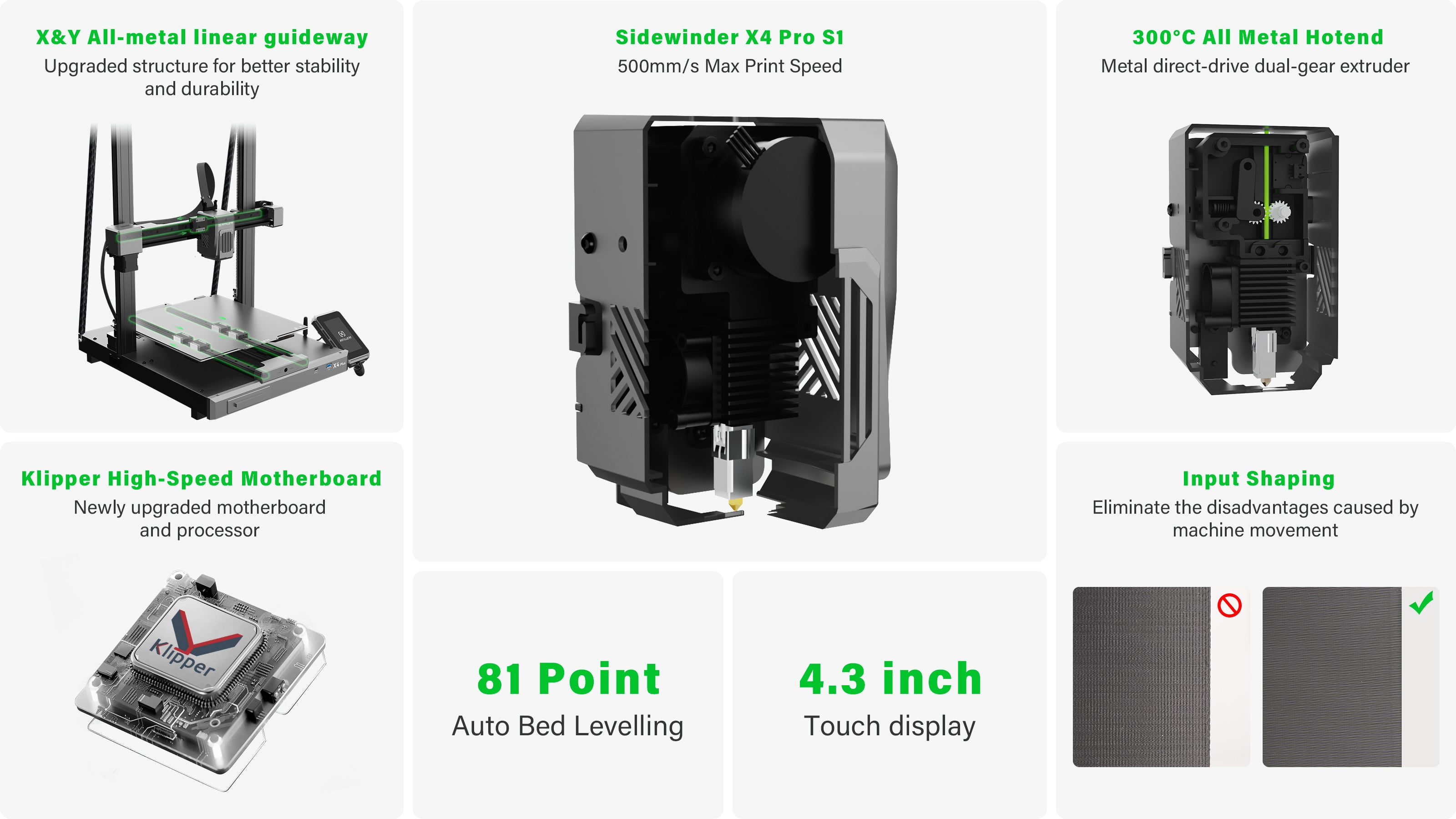The embedded WIFI module allows for faster pairing and more stable connection.Making it a simple and reliable remote printing and monitoring solution for the Sidewinder X4 PRO S1 3D printer.